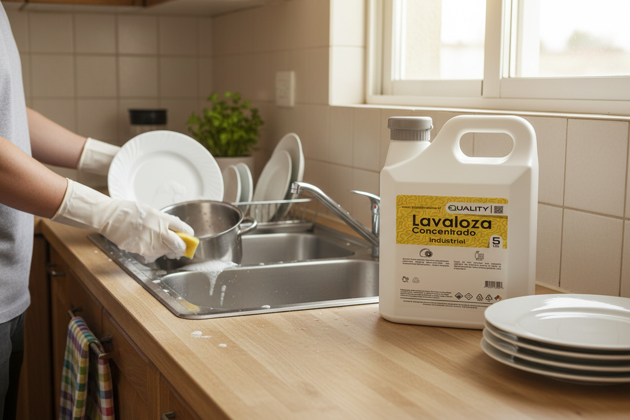 Descubre el poder del Lavaloza Industrial 5 Litros Concentrado de Equalitychile, formulado para la limpieza más exigente. Su máxima potencia desengrasante garantiza vajilla impecable en entornos profesionales.