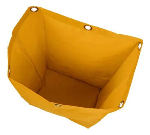 El repuesto bolsa janitor es fácil de instalar gracias a sus 6 ojales reforzados que garantizan una sujeción segura al carro. Su color amarillo facilita la identificación rápida y mejora la organización del personal de limpieza.